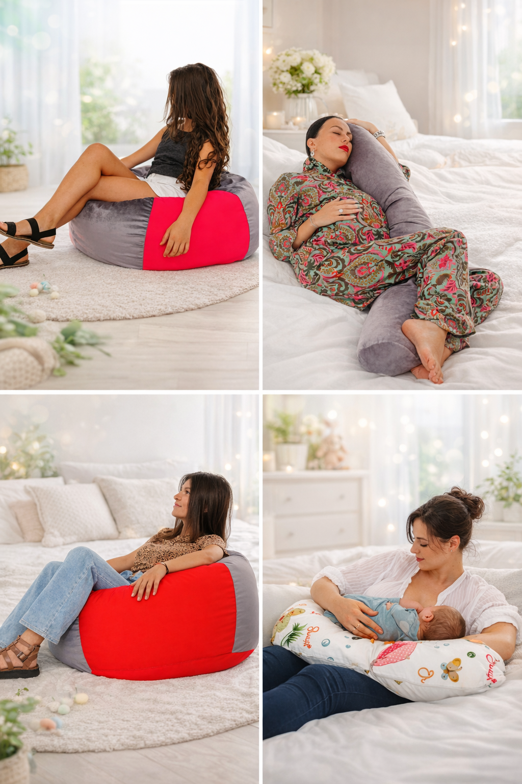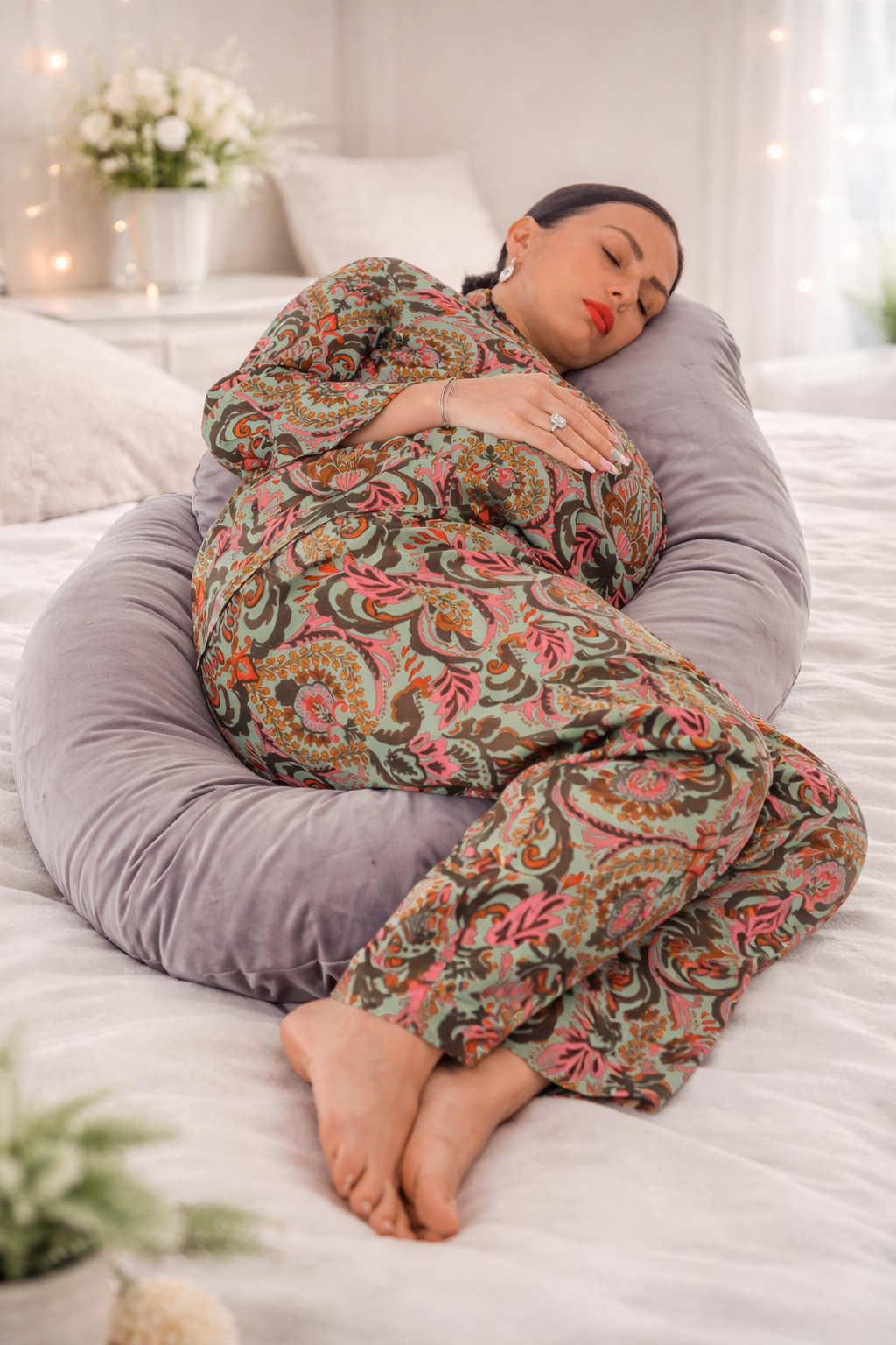 Perna gravide, Ema, multifunctionala, 3 in 1, forma literei U, husa detasabila, model stelute, bumbac ranforce 100%, 135x75 cm
